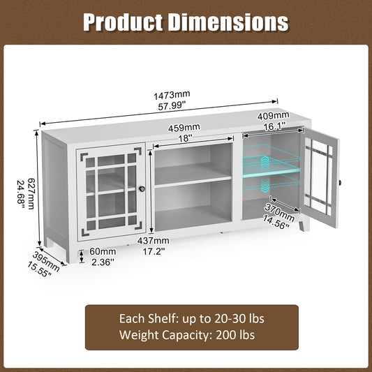 58 Inches TV Stand with Open Shelves