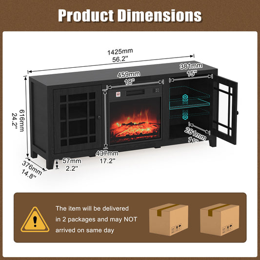59" Fireplace TV Stand with 18" Electric Fireplace