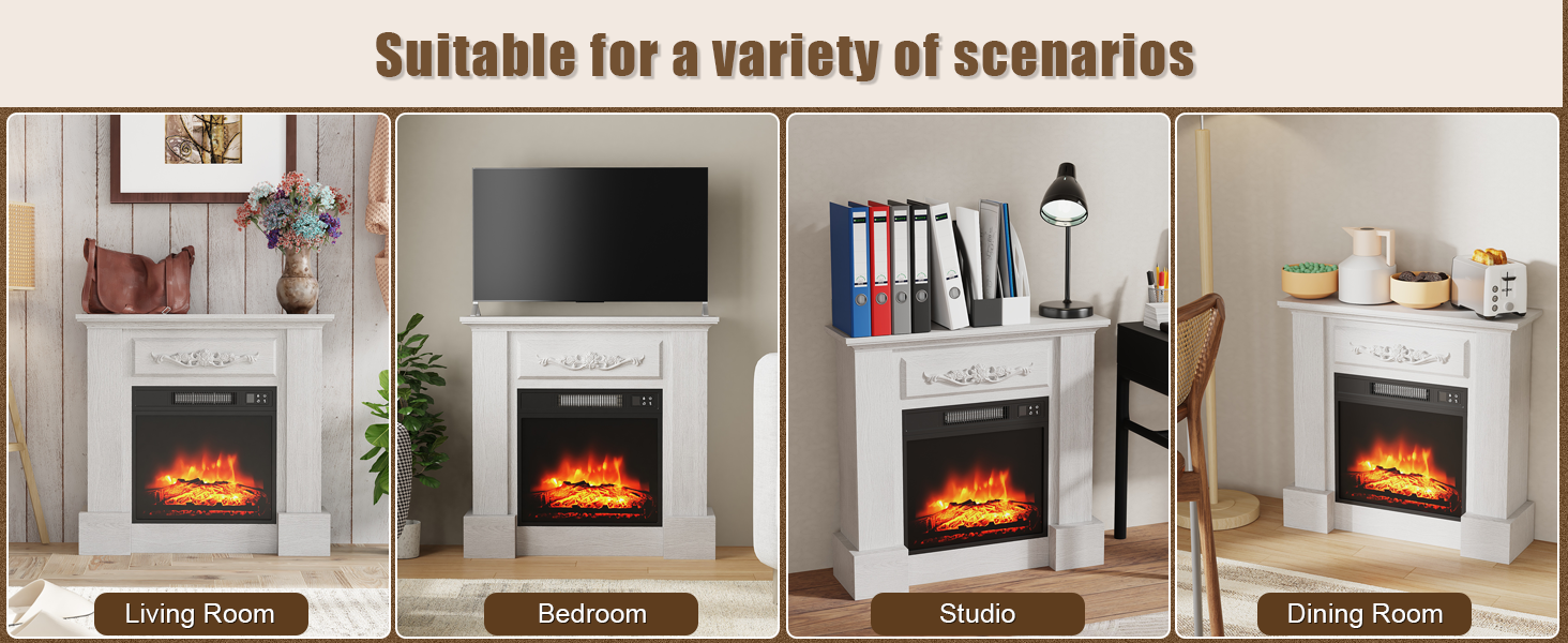 - Elegant Design: The TRONLEE 32" fireplace with mantel features beautifully carved accents, adding a touch of classic elegance to any living room, study, or bedroom. This electric fireplace heater with mantel provides both style and functionality.