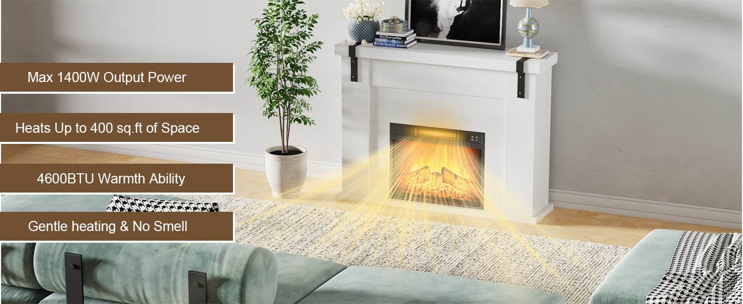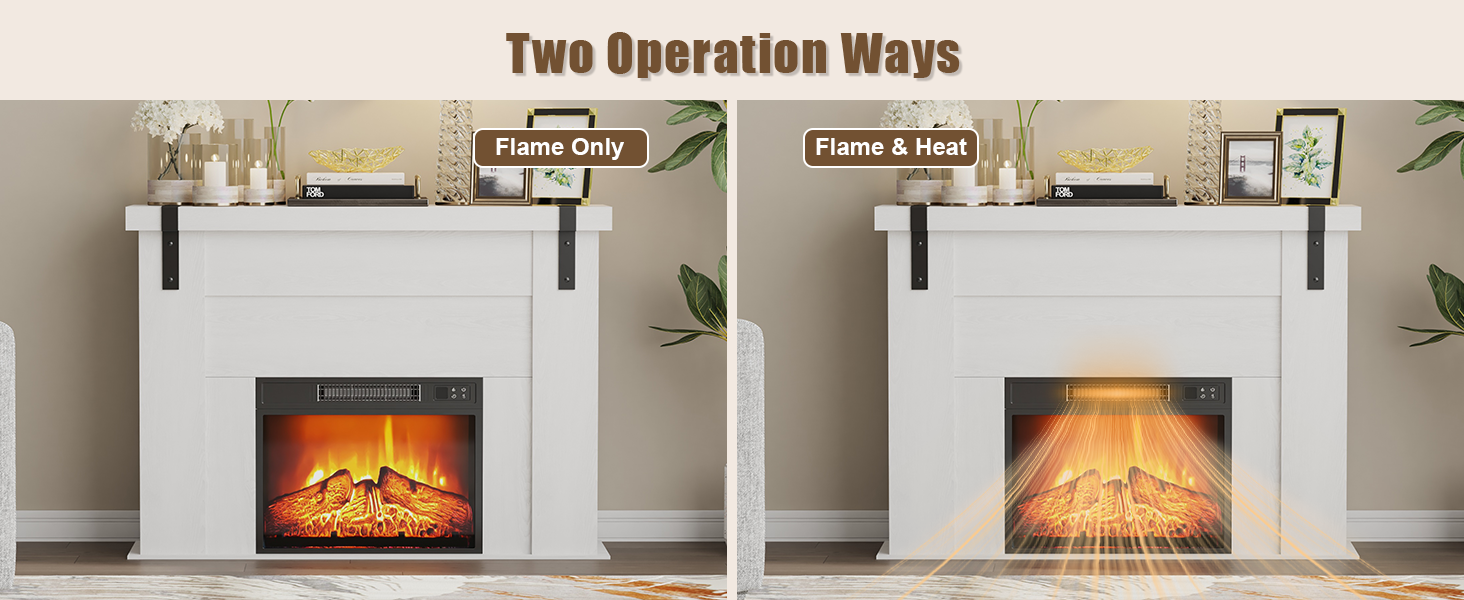 - Multiple Heating Modes: Choose between the fireplace effect only for ambiance or the supplemental heating function (up to 4,600 BTUs).