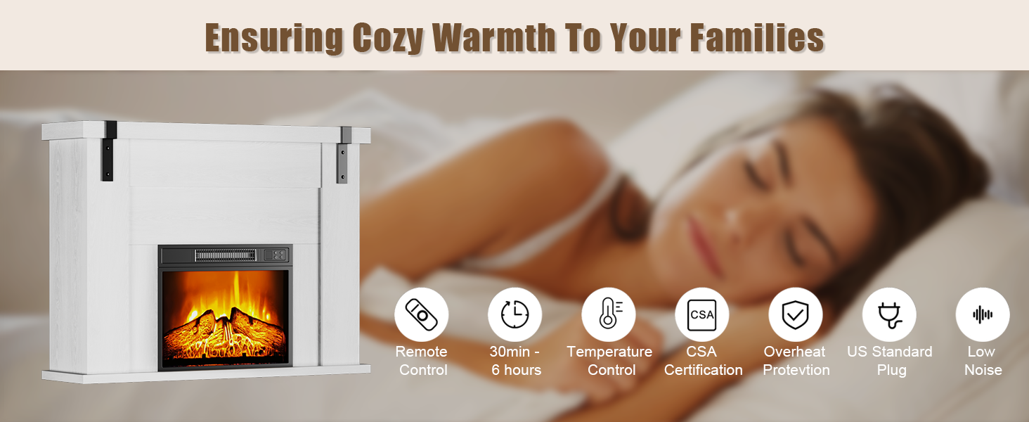 - Freestanding Design: This fireplace comes with an elegant wooden mantel, allowing it to be placed anywhere as a stylish accent piece.