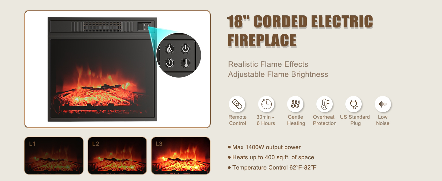 - Color:TV stand with 18'' fireplace / TV stand cabinet